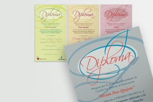 Diseño de diplomas para los premios gastronómicos Don Quijote